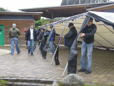 Zeltaufbau bei Sauwetter
