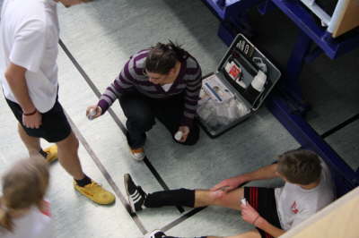 Für eine geübte Sanitäterin wie die Angie sind zwei Verletzte auf einmal auch kein Problem.